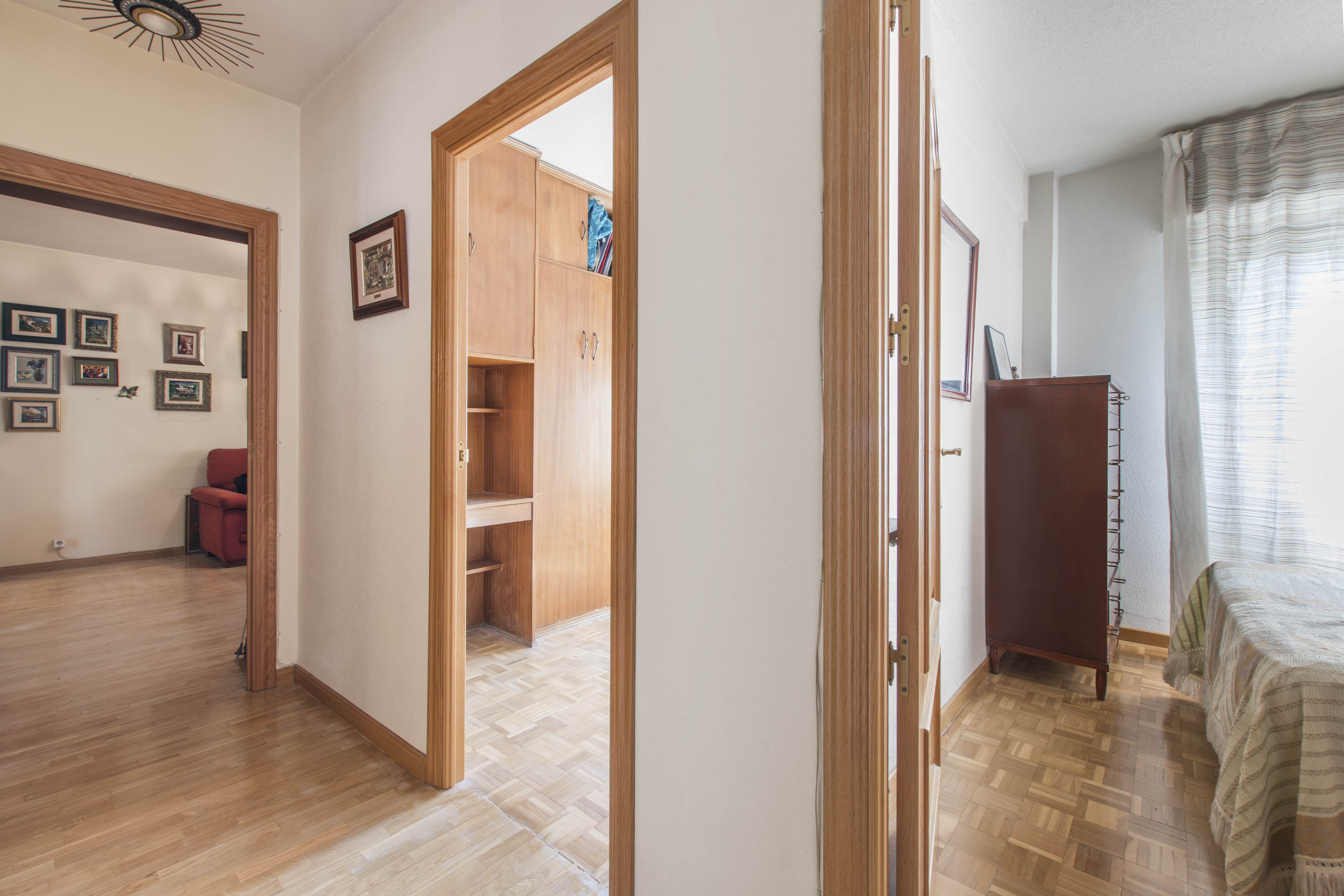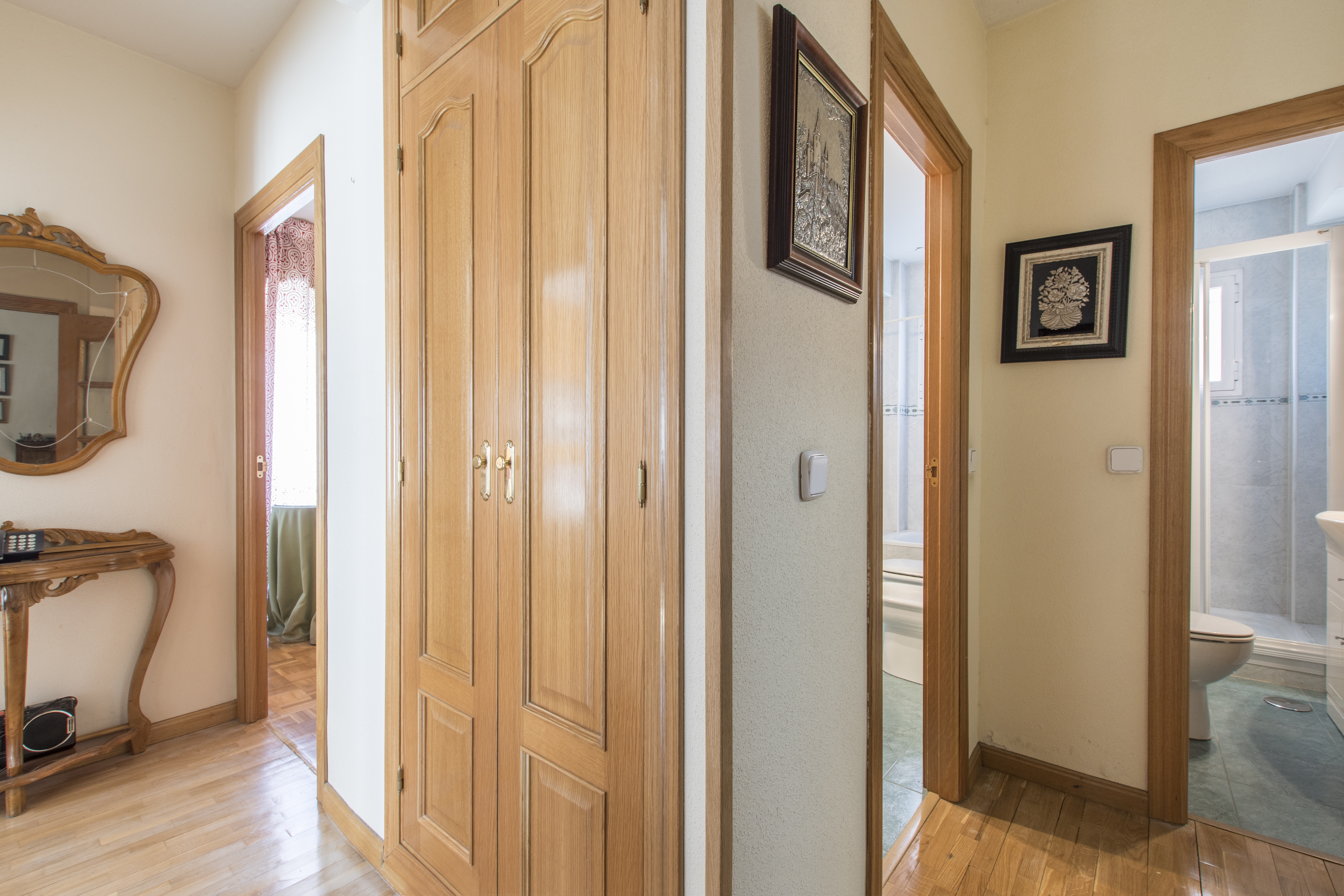 Estupenda vivienda EN ESQUINA, tipo L-8 en 3ª PLANTA con ascensor, ubicada en unas de las mejores zonas de Moratalaz, muy cerca del metro Artilleros. VIVIENDA MUY LUMINOSA YA QUE TODAS LAS ESTANCIAS DE LA VIVIENDA DAN AL EXTERIOR, se distribuye en hall de entrada, cocina muy amplia con muchas posibilidades, un salón muy amplio con terraza cubierta que se puede incorporar al salón, pasillo distribuidor, tres dormitorios, UNO DE ELLOS CON BALCON, dos de los tres dormitorios cuentan con armarios empotrados y dos cuartos de baño completos, ambos con ventana.