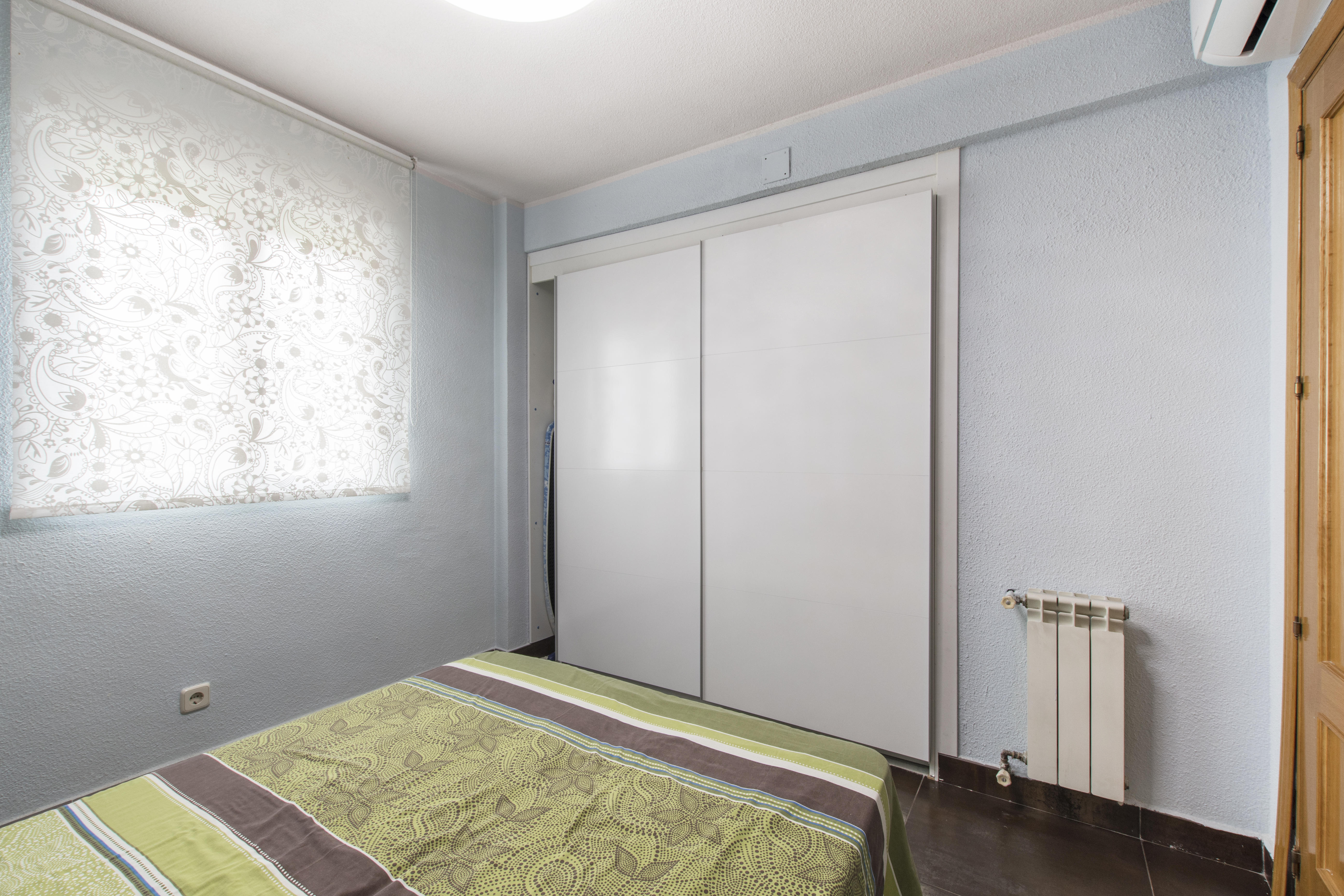 Estupenda y luminosa vivienda exterior tipo L-8 en 4ª PLANTA con ascensor, totalmente REFORMADA para entrar a vivir, ubicada en unas de las mejores zonas de Moratalaz, muy cerca del metro Vinateros. La vivienda se distribuye en hall de entrada, una amplia cocina a la que se ha incorporado el tendedero, un salón muy amplio donde se le ha incorporado la terraza y uno de los dormitorios, pasillo distribuidor, dos dormitorios (antes tres), y dos cuartos de baño completos, uno de ellos en suite. Aire acondicionado con bomba frio/calor en el salón y dormitorio. En el precio se incluye un trastero.